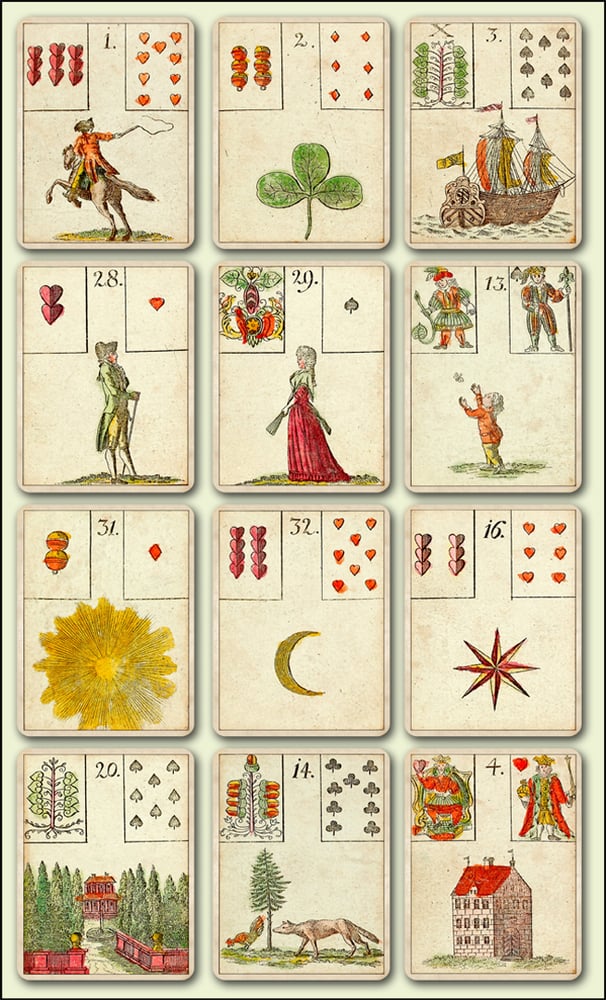 Once the British Museum's Game of Hope cards were seen by modern Lenormand aficionados they noted that the cards not only contain the same images but are in the exact sequence as latter day copies of Lenormand cards. Therefore, these very Game of Hope cards are the actual originals of the cards we now know as the Lenormand Petit Jeu.